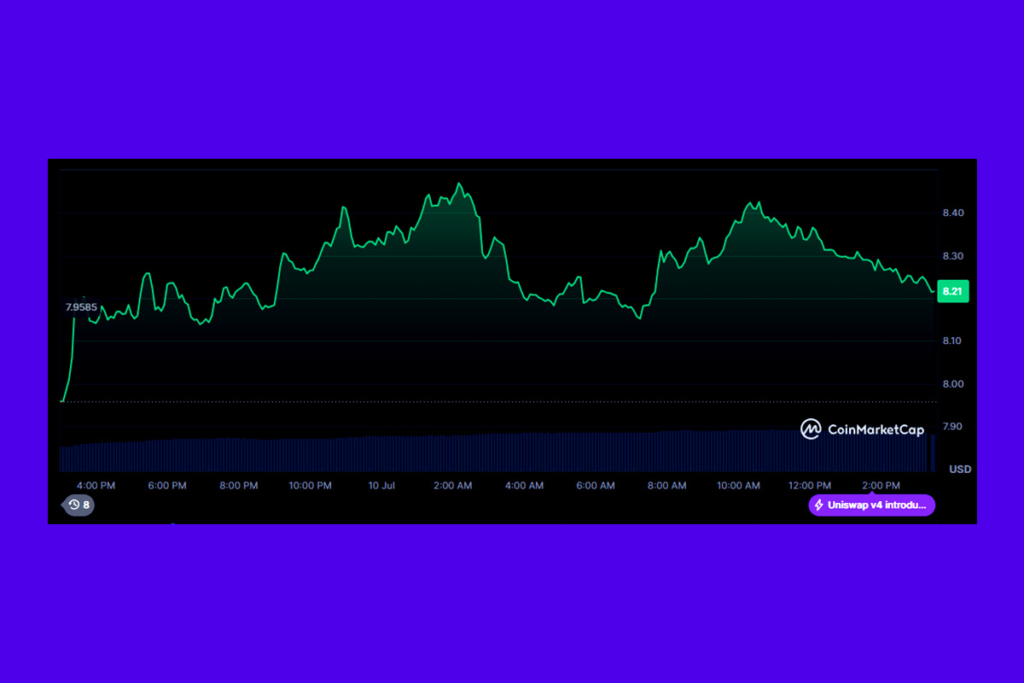 Because of its close relationship to Ethereum, Uniswap is a desirable option for investors hoping to profit from rising prices in the larger cryptocurrency market. Uniswap’s position as a major decentralized exchange enhances its development potential as decentralized finance (DeFi) continues to gain traction. UNI continues to be one of the best-performing DeFi tokens, providing both long-term value and short-term upside during rallies driven by Ethereum, thanks to rising trading volumes and a growing user base.