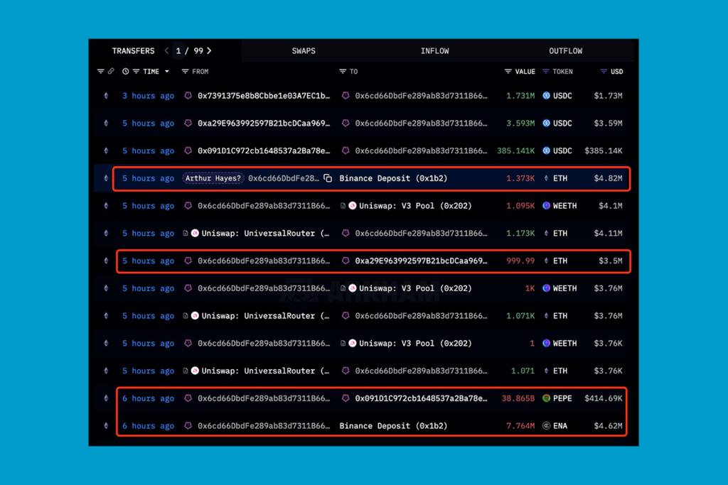 3. Arthur Hayes Sparks Panic: Former BitMEX Boss Dumps ETH and PEPE