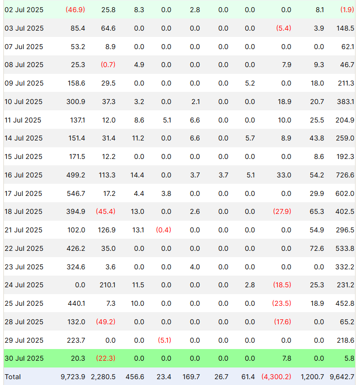 Corporate treasuries now hold 1.3 million ETH, valued at over $4 billion, making up 1.09% of Ethereum’s total supply. This institutional accumulation comes alongside a record-breaking 19 straight days of net inflows into U.S. spot ETH ETFs, which have brought in $5.3 billion in ETH since July 3.