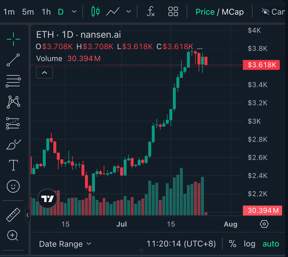 “There’s not a lot of supply of ETH,” Novogratz stated, highlighting a tightening market dynamic. With ETH currently trading at $3,618, he believes it’s “destined to at least knock on the $4,000 ceiling a few times.” A break above that level would send ETH into price discovery, according to Novogratz.