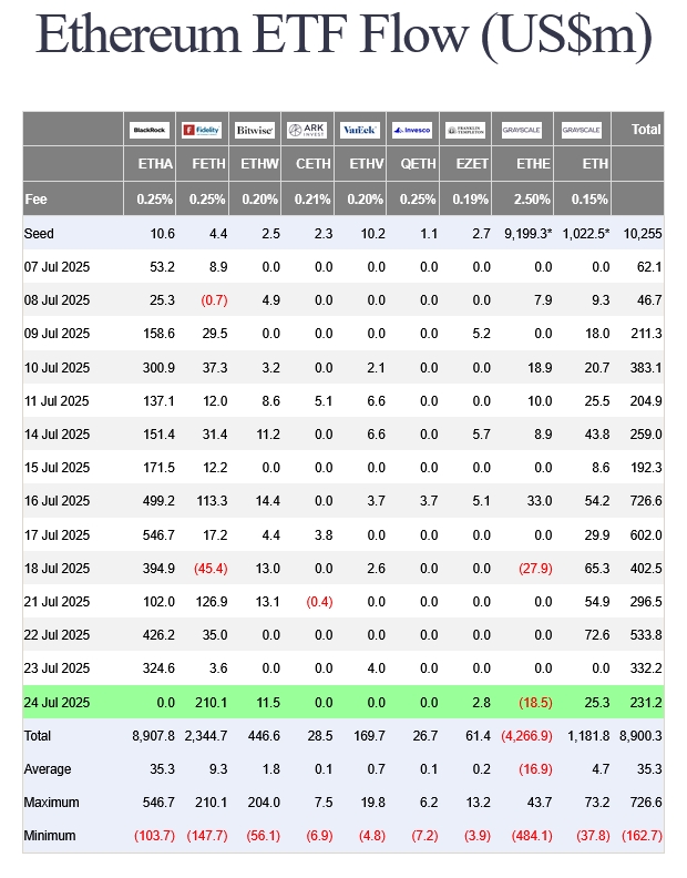 Meanwhile, Fidelity’s Ethereum Fund (FETH) also made headlines, posting its best day ever on Thursday with a $210 million net inflow, surpassing its previous record from December 2024.