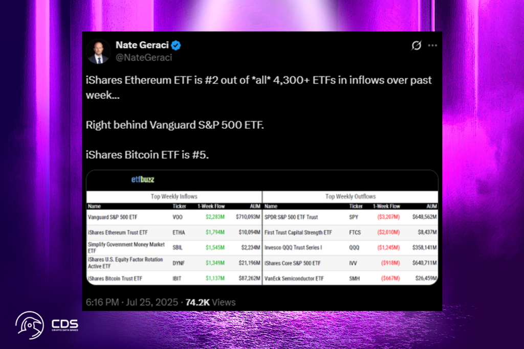In this regard, despite being the market leader in crypto ETFs historically, BlackRock’s Ethereum product saw stronger inflows this week. Actually, ETHA had an outstanding record, with the second-highest inflows of any US ETF.