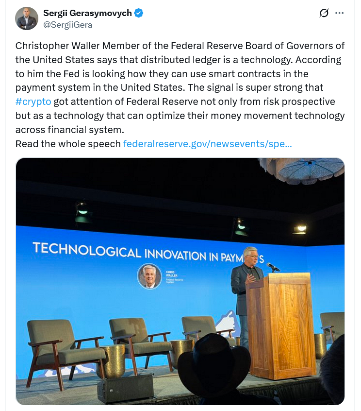 3. Fed’s Waller: “Nothing to Fear” from Crypto Payments