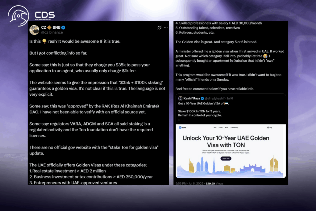 Binance’s CZ Slams TON’s Golden Visa Offer: “Where’s the Official Announcement?”