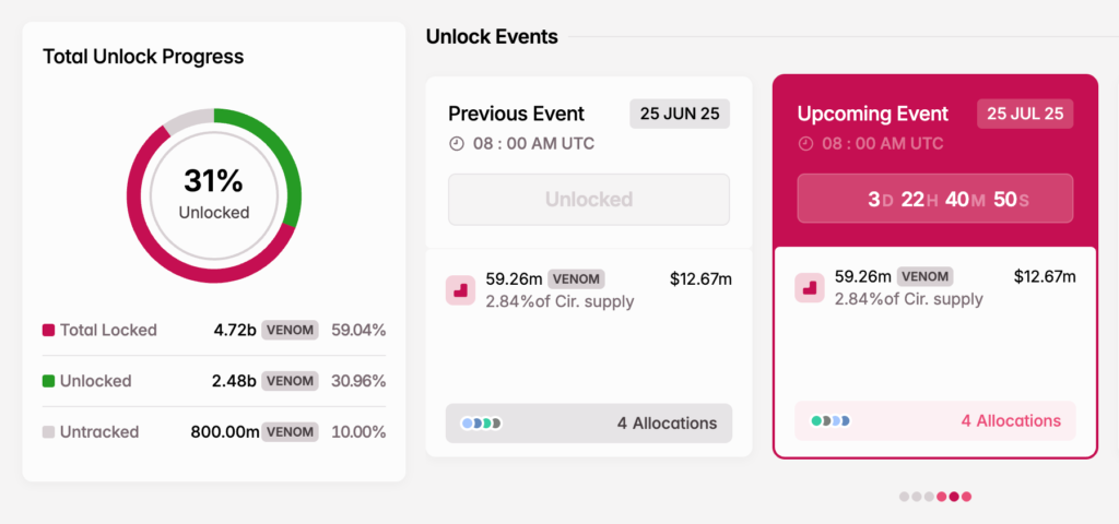 Venom (VENOM) to Unlock 59.26 Million Tokens on July 25