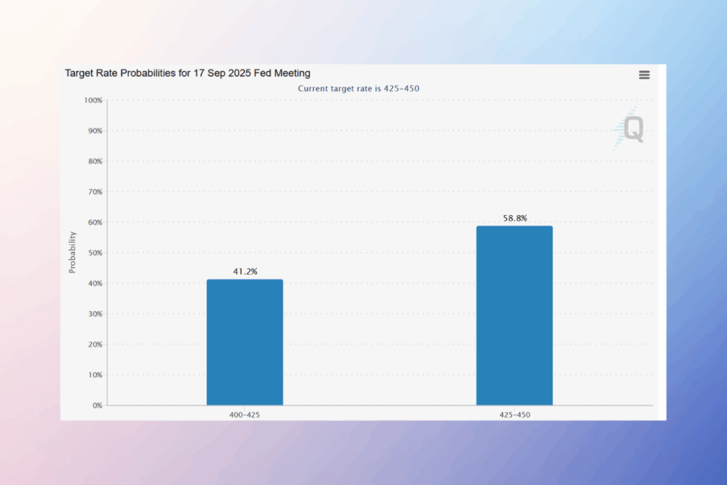 The likelihood of a September rate cut of 25 basis points has dropped from nearly 60% to 43% in the last three days. As markets recalculated expectations for the end of Q3, the odds fell even further to 41% following the most recent inflation report. The traders were now factoring in a greater likelihood of a rate pause in September at 58%. Additionally, risk-on markets may be stalled.