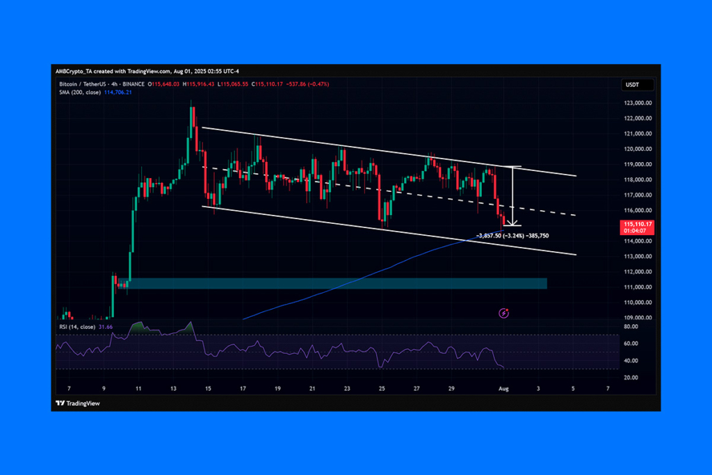 Crypto market sell-offs were sparked by macro headwinds associated with increased tariffs and sticky inflation, as the likelihood of a Fed rate decrease in September continues to decline. Amid further economic headwinds brought on by inflation and tariff concerns, the markets for cryptocurrencies and US stocks fell. As of this writing, Bitcoin had dropped 2.30% below $115 before rising back to the same level. Similarly, Google Finance data shows that the S&P 500 Index (SPY) fell 37 basis points.