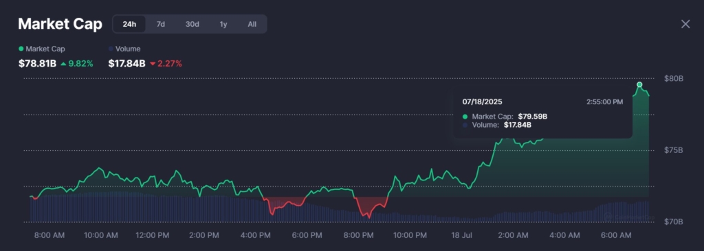 Memecoin Market Surges – The memecoin market cap surged to $72 billion in July, marking a 29% increase from June’s $55 billion. This rapid growth accelerated further on Friday, peaking at nearly $79 billion, a 43% jump since June’s end. Despite a slight pullback to $78.81 billion, memecoins have clearly captured the spotlight, driven by presale hype, community momentum, and new launchpads on Solana.