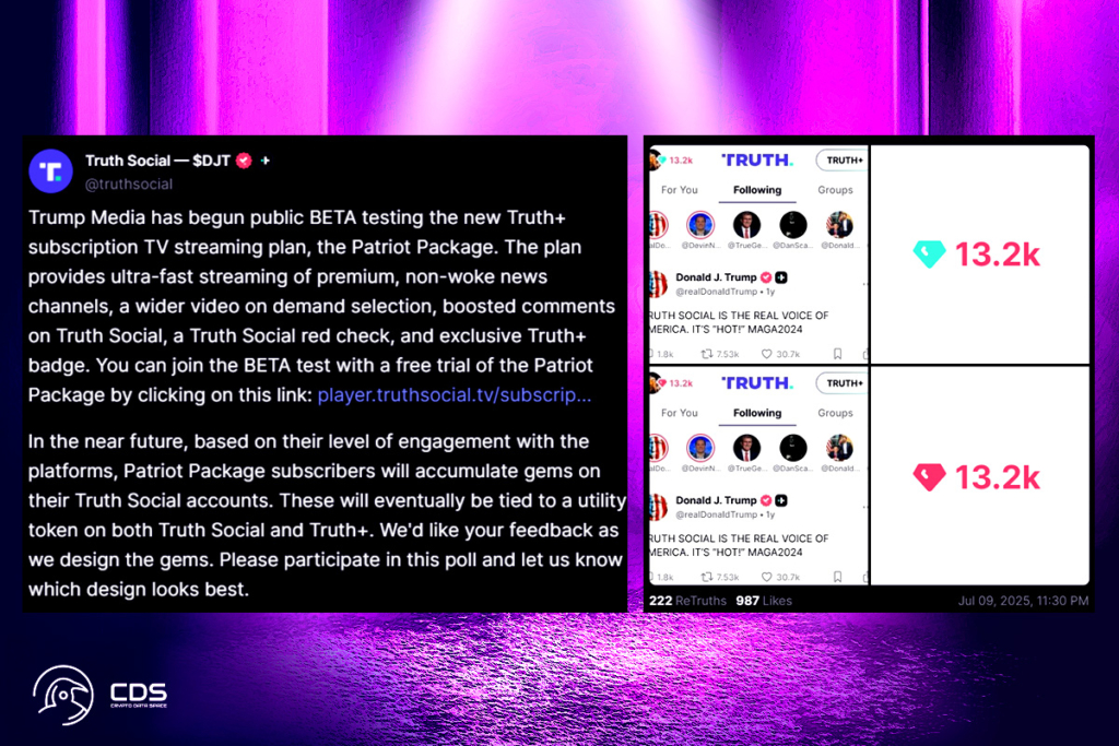 In the near future, based on their level of engagement with the platforms, Patriot Package subscribers will accumulate gems on their Truth Social accounts. These will eventually be tied to a utility token on both Truth Social and Truth+
