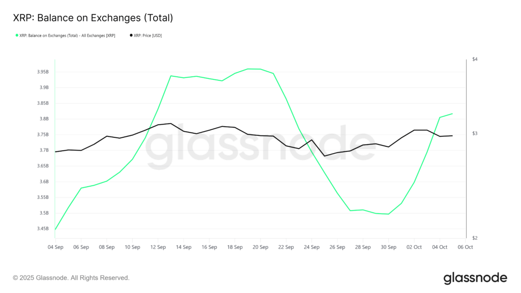 On-chain data shows a clear rise in exchange inflows. Over the past week, more than 320 million XRP, worth nearly $950 million, were transferred to centralized trading platforms. This shift indicates that investors are moving quickly to secure profits rather than hold for long-term gains.