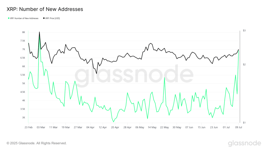 Over the past few days, nearly 7,000 new XRP wallets have been created each day—the highest daily increase in four months. This surge suggests “XRP is gaining significant traction in the market.” As more addresses join the network, demand typically rises, boosting both visibility and credibility for the asset’s market positioning.